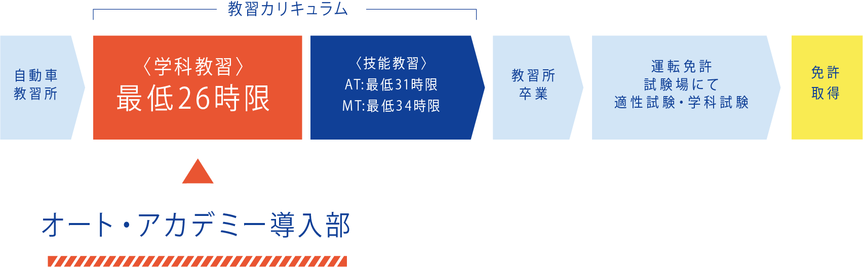 「オート・アカデミー」は従来と同様、法令に定められた教習課程 (教習時間・教習内容)に沿って行われます。